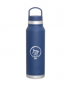 25 oz double wall 18/8 stainless steel thermal bottle with copper vacuum insulation, threaded insulated lid with carrying handle, high polish accent, stainless steel base, and powder coated finish. Hand wash recommended; Do not microwave. Dimensions: 10 H x 3".