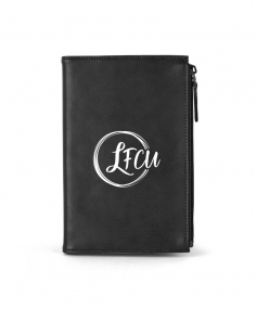 Stylish executive notebook with PU/split leather outer and suede inner cover. Features large zipper pocket (fits up to iPhone 7S Plus). Includes 80-sheet replaceable notebook. 5 3/4" H x 8 1/2" H